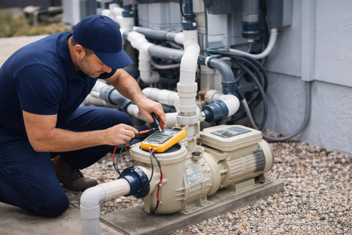 If your pump is under 8 years old and the issue is electrical or a worn seal, repair is almost always the right call. If it's over 8–10 years old, constantly tripping breakers, or the motor has seized, replacement usually makes more financial sense — especially given the energy savings of modern variable speed pumps. Our technician will give you an honest recommendation on-site.